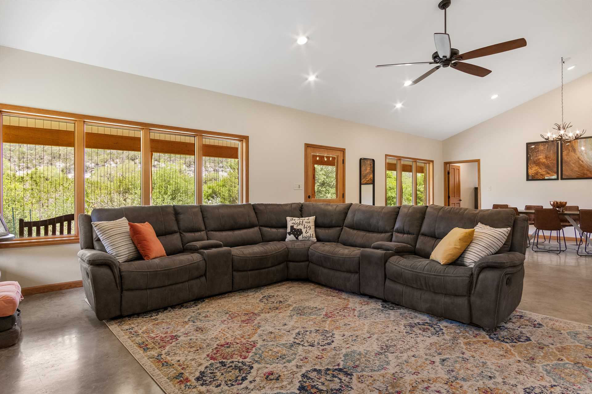 No one gets left behind when you visit the Roadrunner Canyon Ranch, just eight miles from Leakey! It's a magical riverside vacation rental with tons of comforts and amenities, it's kid- and pet-friendly, It's ADA compliant, and has comfy sleeping space for up to 10 people. You'll be surrounded by jaw-dropping canyon and mountain views and plenty of wildlife, all in a peaceful and roomy vacation home. This family-friendly rental has everything that draws people to the big and beautiful Hill Country!